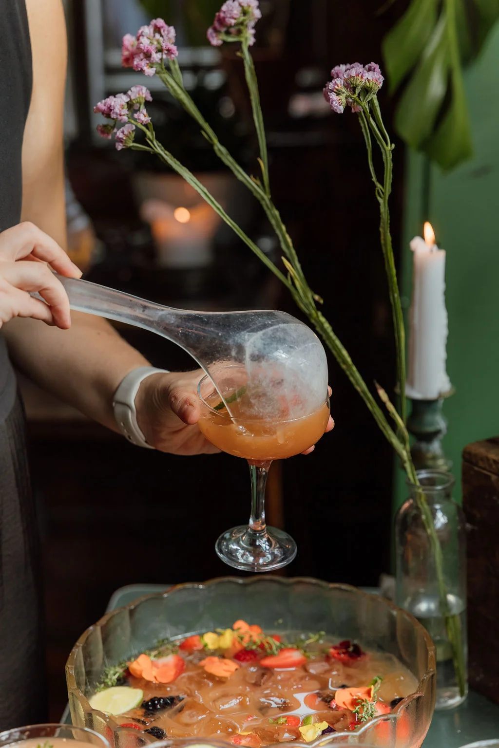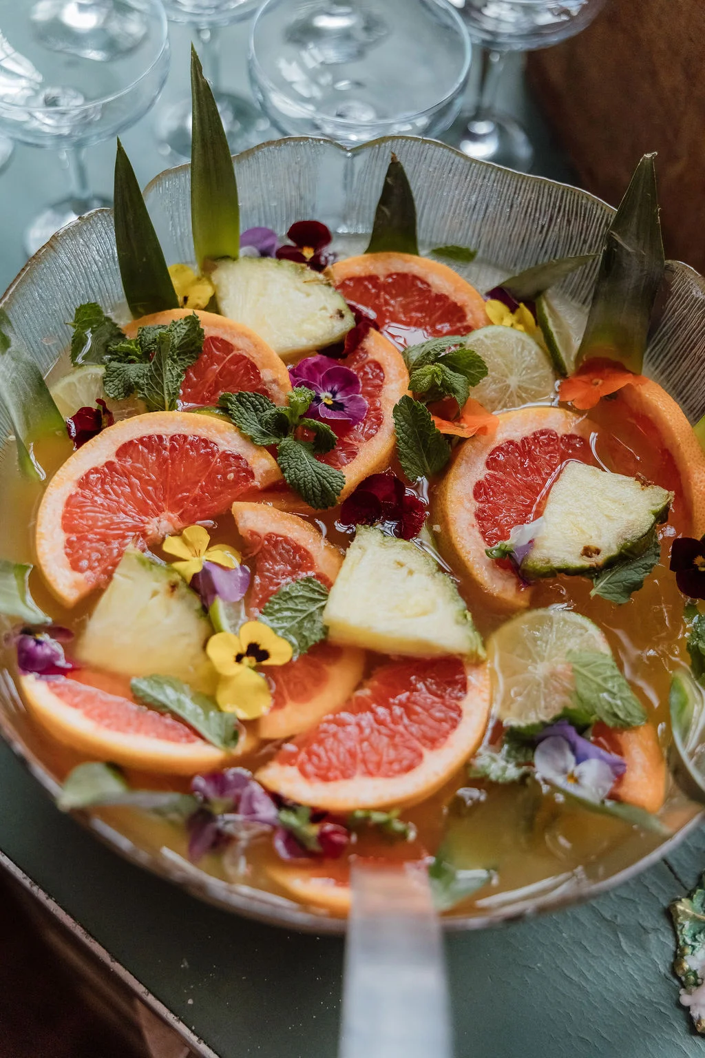 Welcome Drink - punch bowls - the strawberry gin one and the kelham island rum punch